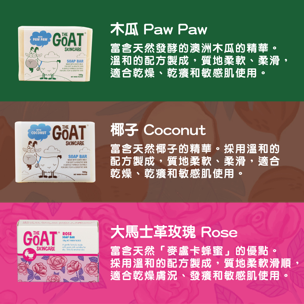 而且Goat Milk的pH值和我們的肌膚最為相近,所以適合所有肌膚使用,包括嬰兒和孕婦,而且能滋潤和修護肌膚,讓乾癢、脫皮等不適症狀能得到舒緩。