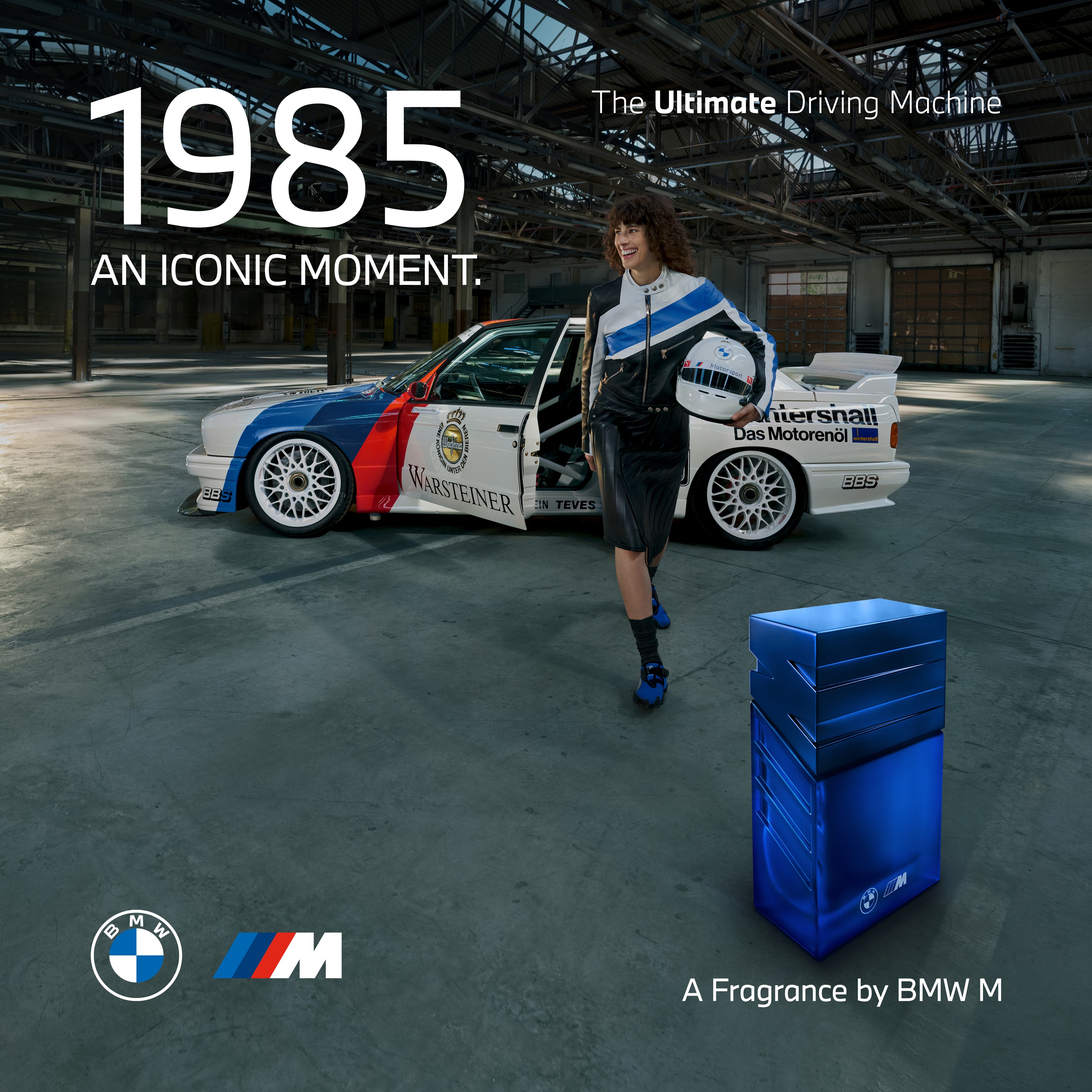 這款淡香水體現了高速精準的精髓和創新的時尚酷感。「M1985 傳奇降臨淡香水」的靈感來自標誌性的 BMW E30 M3,作為1980年代中期賽車運動的認證車型,它塑造了新一代極致敏捷的公路和賽道跑車。這款香水具有優雅的果香前調,與木質琥珀之後調形成鮮明對比。瓶身為深藍色,與 BMW M 標誌中的第二道條紋相匹配。